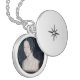 Silver plated locket with Anne Boleyn portrait inside. It is UV Resistant and waterproof. Charm diameter: 1.125". Chain length: 18" with 2" extender.