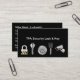 Cool locksmith business card design template created with various security and lock products and classic two side business card you can customize online. Designed for a licensed Locksmith, security services and locksmith supplies