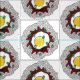Fabric features an original marker illustration of loco moco, a popular Hawaiian dish consisting of rice, hamburger, a fried egg, and gravy. Ideal for any fan of Hawaii and Hawaiian cuisine.