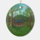 Log Cabin and Trees Ceramic Ornament