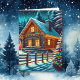 Log Cabin on Christmas Eve Personalized Card