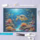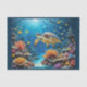 Loggerhead sea turtle diving in reef and corals tissue paper