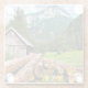 Logging Camp in the Forest with Mountains Glass Coaster