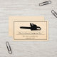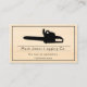 Wood Grain Logging Tree Trimming Saw Service Business Card. Features a black power saw and a place you can personalize it with your own name and information.