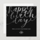 Stylish modern two side print elegant fun black glamorous Square Business Happy Birthday Greeting Card featuring simulation of faux silver foil hand lettering script text on a black background. Please note that the silver in this design is a flat color grey print and is not an actual metallic foil. Perfect combination of elegance and formal business luxury with a warm feel. Change the "your logo here" image with your logo or remove it if you want to use it without a logo. Don’t forget to customize the front side and back text as well.