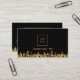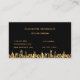 A black background, with a faux gold city skyline as decor. Template for your business logo and a text on front. Golden letters