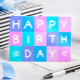 Add a pop of cheer to birthdays with our captivating Business Happy Birthday Card, showcasing a playful design of colorful blue and lilac pink blocks adorned with handwritten 'Happy Birthday' fonts in each block. Perfect for extending warm wishes to employees, business partners, and valued customers, this card offers a personalized touch with space inside for your custom business logo and heartfelt message. With our easy-to-use online template, customization is a breeze, making each card uniquely yours. Elevate your birthday greetings with this fun and vibrant card, guaranteed to bring smiles to recipients' faces. Order now and make every birthday celebration unforgettable!