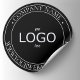 Black and white modern and minimalistic round sticker. Promote your company and use this sticker on mailing. products, gift bags and other promotional product. Any logo shape will fit in the logo space. You can try with your logo and see how it will turn out before you buy.