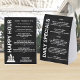 Add your business logo and custom text to these faux black chalkboard 4 x 6 paper table tents that you personalize for your specific company needs. This table top sign template consists of bold white lettering down the left side and a single column of text centered just to the right of that, all on a background of trendy black chalkboard. Your logo and business information are at the bottom. The same simple modern template is repeated on the back of the custom paper table tents, without your logo, with separate input so that you can extend the promo, price list or menu information as you require. These personalized paper table tents are suitable for restaurants, bars, beauty salons, gyms, real estate, hotels, retail stores and so many other businesses. Just add your logo and personalized text to create your own custom paper table tents with the look of chalkboard and be on trend.