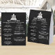 Easy to edit, just add your business logo and custom text to these personalized 5 x 7 paper table tents with a trendy black chalkboard effect and make them into your very own for your company's specific needs. This simple modern table top sign template consists of two headers beneath your logo and two columns of white text on a faux black chalkboard. The same template is repeated on the back of the custom paper table tents but with separate input fields (except for your logo) so that you can really pack in the information as needed. These custom paper table tents are perfect for restaurants, bars, beauty salons, gyms, real estate, hotels, retail stores or whatever other small business your company runs. Just add your logo via upload, add personalized text in white and create your own paper table tents with the trendy look of black chalkboard.