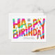 Customize this fun horizontal modern colorful bold warm and kind Business Happy Birthday Greeting Card featuring big wax rayon style multicolor rainbow handwritten fonts on a white background. Colors in this design are red, orange, yellow, pink, blue, green. Change the "your logo here" image with your logo. Don’t forget to customize the front side and the back side text as well. Perfect unformal formal birthday wish for employees, customers and business partners.