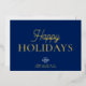 Send elegant holiday greetings to clients, employees, and business partners with this sophisticated simple minimalist corporate Happy Holidays card. Featuring genuine gold foil “Happy Holidays” text on a customizable navy blue background, this design exudes both style and professionalism. Personalize with your custom logo and add your holiday message on both sides. The navy blue background is easily changeable to suit your brand colors, and the gold foil can be switched to rose gold or silver for a unique touch. This card is set as a convenient online template, allowing seamless customization to create the perfect seasonal message for your office and professional network.