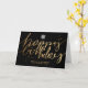 Horizontal fun modern script hand written warm and kind Business Happy Birthday Greeting Card featuring faux gold hand lettering text on a black background. Please note that the gold in this design is a flat beige yellow color print and is not an actual foil. Change the "your logo here" image with your logo or remove it if you want to use it without a logo. Don’t forget to customize the front side and the inside text as well. The black background color is customizable and can be changed to any other color to match your business color scheme.