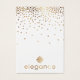 This glam card features template space holders in which you can add your own logo or graphic to the front, and contact details to the back. The sample logo here appears in gold but this design would be lovely for a different color as well. Over the editable white background, I've placed a bold graphic depicting faux-gold confetti seeming to fall from above.