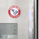 Well Designed High Quality Magnet. Colors are Vibrant Clear Excellent good size Diameter Circumference Fonts Red Folio Bold Clover Green Outline Puffy White Interior Image