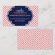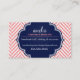 LOGO modern herringbone pattern coral badge navy Business Card