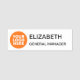 Logo Name Title Simple Staff Employee Name Tag. Easy to use template with example showing logo, and sample text Name, Title - General Manager. Both Name and position title can be double lined if need be. All colors, text, fonts are customizable. We invite you to visit our Zazzle store, Beachy Design Co, to view matching products and more. Please contact us if you require any assistance.