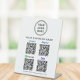 Simple modern table top pedestal sign for your business with Venmo, Paypal, CashApp and Zelle QR codes for customers to scan for payments. Add your logo, QR codes, and business name, phone number and website in simple typography.