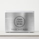 Simple personalized laptop skin for your business or organization on a brushed silver faux metallic background. Add your logo and a line of customized text, such as your company name, or leave blank.