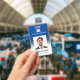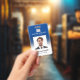 Logo photo blue gradient employee name title id badge