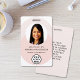Personalize this blush pink Logo Photo Employee ID Badge by using the template to create your business logo and add the employee's name and photo. You can add an employee ID on the back and any return if lost information.