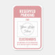 Reserved parking sign for your place of business. Add your own logo. Sign would read as Reserved Party for (your business name) Customers. There are two additional lines for your unique content, and a generous space for your logo.