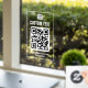 White and clear window cling with your custom logo, QR code and custom text. Great for your business to let customers scan for more info, deals, online menu, to pay etc.