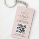 Keychain with your custom logo, QR code and custom text on a light blush pink or custom color background. Change fonts and font colors, move and resize elements with the design tool.