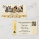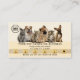 Loyalty business card featuring your own logo on an elegant yellow gold background design with cute pets. A row of metallic gold numbers can be used to punch the visits of your customer. On the back is an optional and easy to customize QR code template. A great business card for a pet grooming salon or veterinarian clinic.