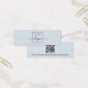 Light dusty blue or any color earring mini product display card with centered custom logo template and QR code on the back. The earring guides can be adjusted by adding and removing spaces in the template field, and by moving the whole element in the design tool.
