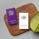 Elevate your professional presence with this modern, minimalist vertical business card design, featuring a sleek purple and white background and a customizable two-sided layout. Personalize it effortlessly by replacing the placeholder "Your Logo Here" with your own business logo on the front side for a polished, professional look, and your qr code on the back side.