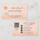 Elegant referral business card featuring your own logo (if you replace the sun image) on an elegant peach pink background design. On the back is a QR code template as well as an optional row of media icons. A great business card for a beauty salon or other professionals in the beauty industry.