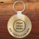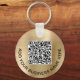 Modern promotional keychain for your company or organization with a brushed gold faux metal background. Upload your logo, easily create a scannable QR code linked to your website, and add two lines of text, such as your business name, slogan, thank you, or leave blank.