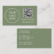 This sage green modern business card is easy to personalize using the online personalization template before ordering. Please change the URL (website address) for the QR Code in the QR Code URL field, to your business website address, so that the QR Code will be generated automatically for you. Please also change the fields for the text that you wish to be displayed on the business card and please upload your business logo to replace the logo placeholder. Should you need to change font size, font style, font color, background color or layout, then please click on the "Edit using Design Tool" button to "customize further" (the button is available by scrolling down in the online personalization template.