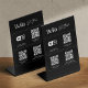 Our sleek, modern pedestal sign is designed to connect your customers instantly to your digital presence. Featuring three dedicated QR codes, it makes access effortless: Wi-Fi QR Code – Let visitors connect to your network with a single scan. Social Media QR Code – Direct followers to your profiles for updates, promotions, and engagement. Website QR Code – Drive traffic to your website for more information, bookings, or online shopping.