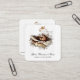 SQUARE - rounded corner 2 upload Business card with Rose and Ephemera which is old fashioned hand writing.