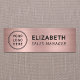 Modern work name tag with your business or organization's logo against a rose gold faux brushed metallic background. Add a name and title in simple typography.