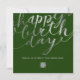 Stylish modern two side print clean glamorous Square Business Happy Birthday Greeting Card featuring simulation of faux silver foil hand lettering script text on a chic forest green background. This color can be changed to any other. Please note that the silver in this design is a flat color grey print and is not an actual metallic foil. Perfect combination of elegance and formal professional business luxury with a warm feel. Change the "your logo here" image with your logo or remove it if you want to use it without a logo. Don’t forget to customize the front side and back text as well.