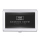 Elegant, black and dark gray gradient business card holder with your custom logo, name and title/company name. White and gray text.