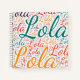 Lola. Show and wear this popular beautiful female first name designed as colorful wordcloud made of horizontal and vertical cursive hand lettering typography in different sizes and adorable fresh colors. Wear your positive american name or show the world whom you love or adore. Merch with this soft text artwork is a great present, not only in womens history month, or birthday gift.