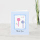 What a sweet way to say thanks with this pretty lollipop design. Pink and blue swirls and candy dots featured on this note card. A soft blue background accents it.