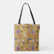 Whimsical tote bag features large colorful doodles of Big Ben, palace guards, tea cups and other depictions of London life