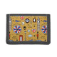 Whimsical unisex wallet features large colorful doodles of Big Ben, palace guards, tea cups and other depictions of London life