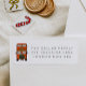 Whimsical return address labels featuring a red London double decker bus illustration with a Christmas wreath as a special festive touch next to your address. Makes for happy Christmas mailings all season long! Original art and design by Annie Montgomery Design.