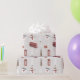 Cute and cozy London England British wrapping paper featuring cozy mugs, snowmen, and London icons.