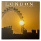 A beautiful photograph of the sun setting and the London Eye printed on a souvenir ceramic tile.