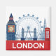 London magnet depicting Big Ben, London Eye, Tower Bridge and the Shard,