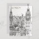 This travel postcard, in hand drawn sketch-style, showcases a view of London's skyline.