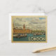 London design in Vintage Travel style featuring Westminster Abbey on the River Thames for this fun England UK scene.