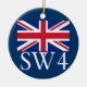 London Postcode SW4 with Union Jack Ceramic Ornament